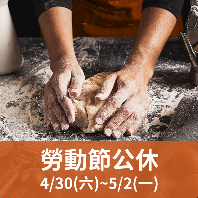 4/30(六)~5/2(一),勞動節3天公休 公休3天,門市休息,客服出貨暫停,5/3(二)繼續為大家服務 賀揚Baking104感謝各位的愛護