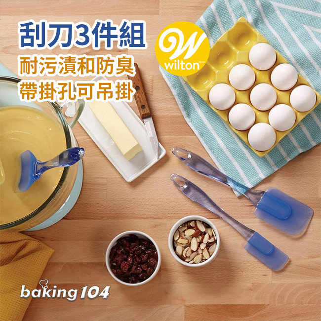 美國WILTON惠爾通設計的刮刀三件組,具有耐熱、不傷器具表面、耐污防臭等功能。