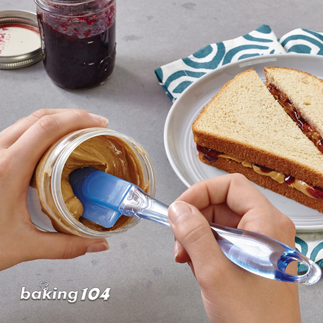 。窄型抹刀 – 利用再口徑小的果醬、花生醬、罐頭累商品都可以刮得一乾二淨、同時可以用來抹在土司、司康上!