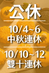 10/4(六)~10/6(一)公休3天,以及10/10(五)~10/12(日)門市休息,客服出貨暫停 連假過後正常出貨,繼續為大家服務! 蝦皮連假限時優惠中~看更多詳情...
