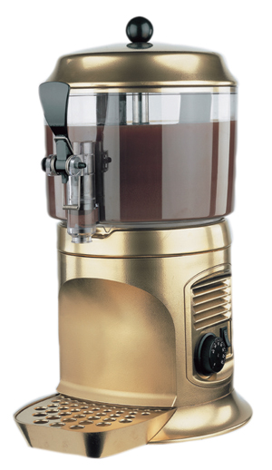 Elegant counter top dispenser specially meant for the mixing and dispensing of thick chocolate and other hot drinks.