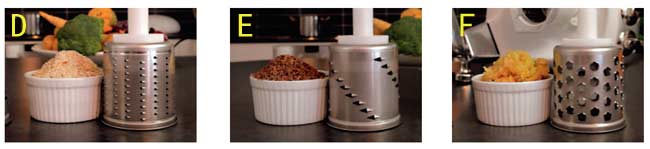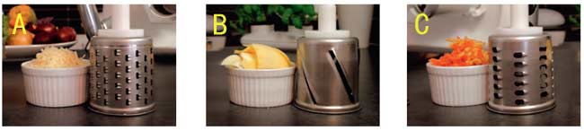(A) 中度刨刀:適合切削生吃的根莖與蔬菜、烘焙用的杏仁果與殼果類、水果、乳酪