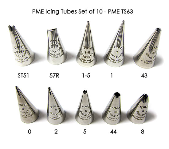 This is a 10-piece PME Supatube decorating tip set containing one each of the following: