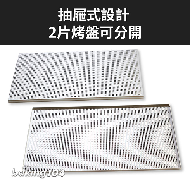 自有品牌商品 - 千層酥皮鋁合金烤盤 ◆ 上下結構一體,可拆卸推拉設計,為抽屜式設計,2片烤盤可分開 ◆ 鋁合金沖孔烤盤,適用千層酥皮、酥脆點心 ◆ 可烘烤出厚度相同的千層酥皮 外徑尺寸:600x400 高10 mm 內徑尺寸:590x390 高9 mm 材質:2mm鋁合金 規格:1組