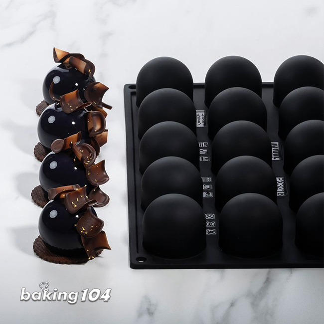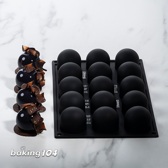 SPHERE40TIME 單槽尺寸:直徑43 高39 mm 單槽容量:40ml (共15槽) 模具外徑:300x175 mm 耐熱溫度:-40~+230°C