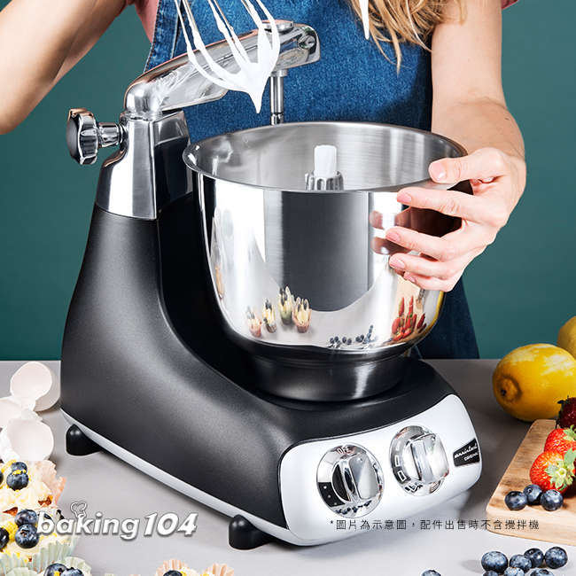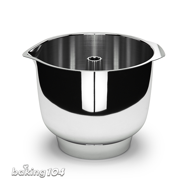Beater bowl stainless steel 尺寸:222x255 高189mm .不繡鋼打蛋盆耐熱,非常適合製作義式蛋白霜 .材質:不繡鋼 .適用Assistent Original攪拌機 .容量:可達3.5公升 .易於使用、打蛋盆內層有刻度、有把手 .盆底有矽膠環增加穩定性
