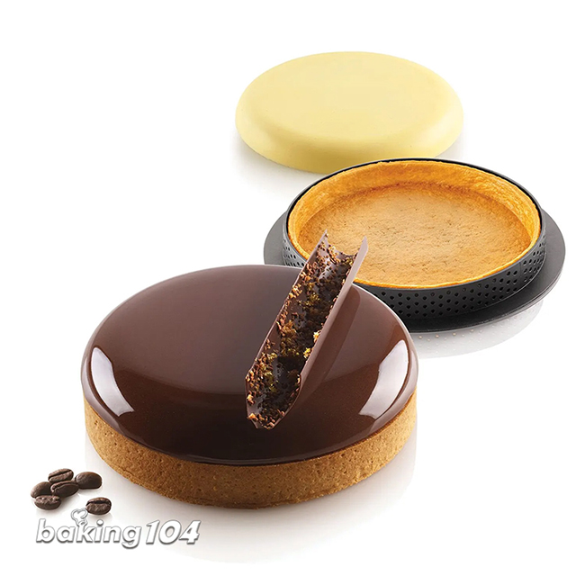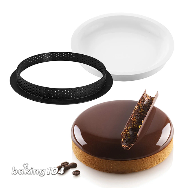 Kit Tarte Ring Palet Ø 150 mm 單槽尺寸:直徑147 高18 mm 單槽容量:270ml (共1槽) 塔圈規格:直徑150 高20 mm (不沾熱塑性材質) 耐熱溫度:-60~+230˚C 規格:1. 矽膠模2片 2. 網洞塔圈2入 包裝方式:盒裝