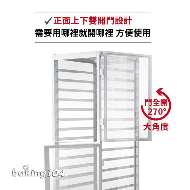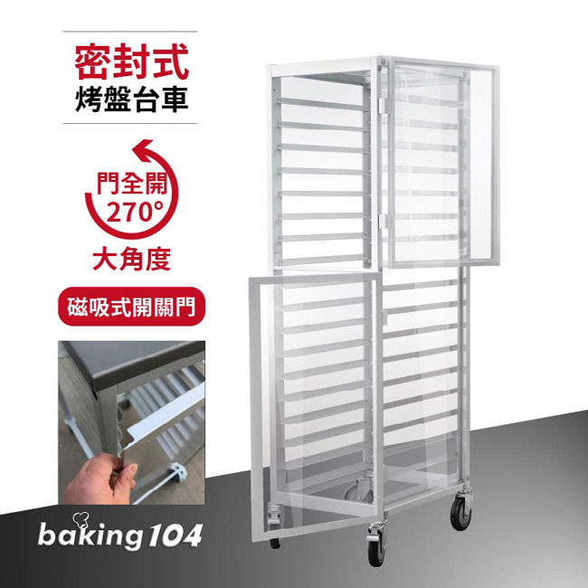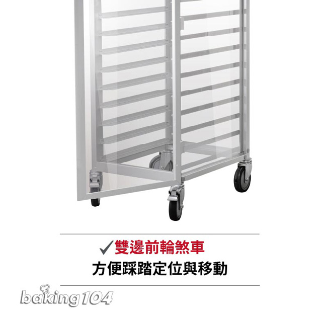 18層固定密封式鋁合金台車 - 上下雙門,適用烤盤尺寸600x400mm,有門烤盤層車