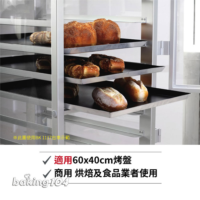 編號:BK 1118 外徑尺寸:長610 寬480 高910 mm 層架間距:78 mm,固定式層架 適用烤盤尺寸:600 x 400 mm 材質:鋁合金 材質:鋁合金層架、鋁合金硬膜工作檯上蓋、壓克力板