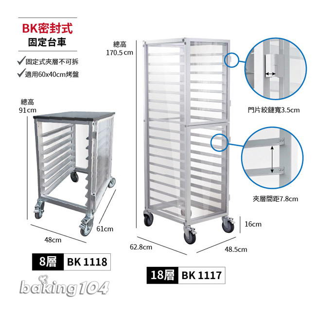 另有18層固定密封式鋁合金台車可選: 編號:BK 1117