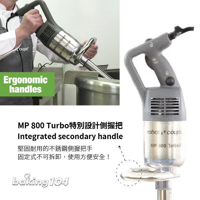 MP 800 Turbo特別設計不銹鋼側握把堅固耐用,固定式不可拆卸,使用方便安全!